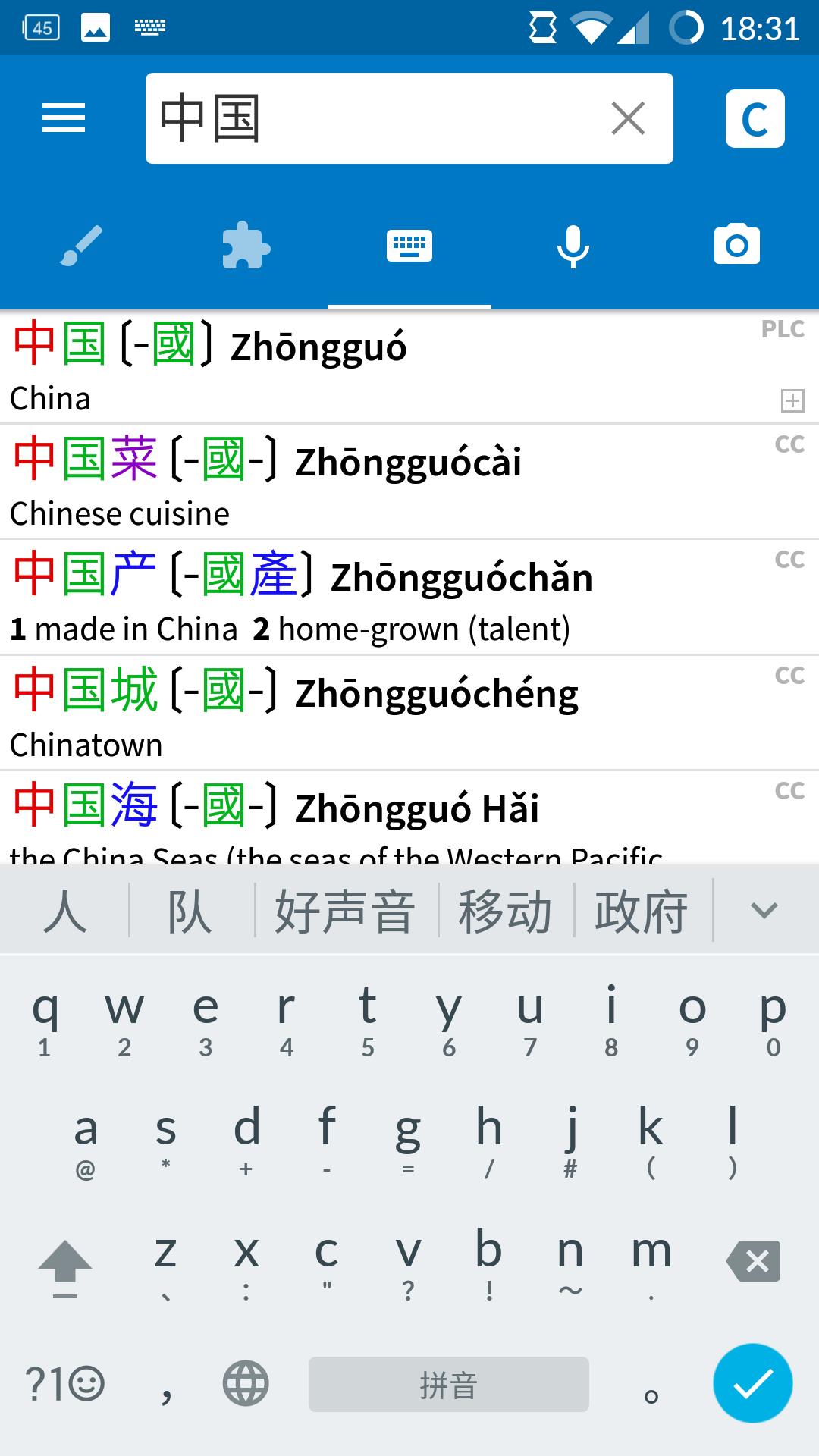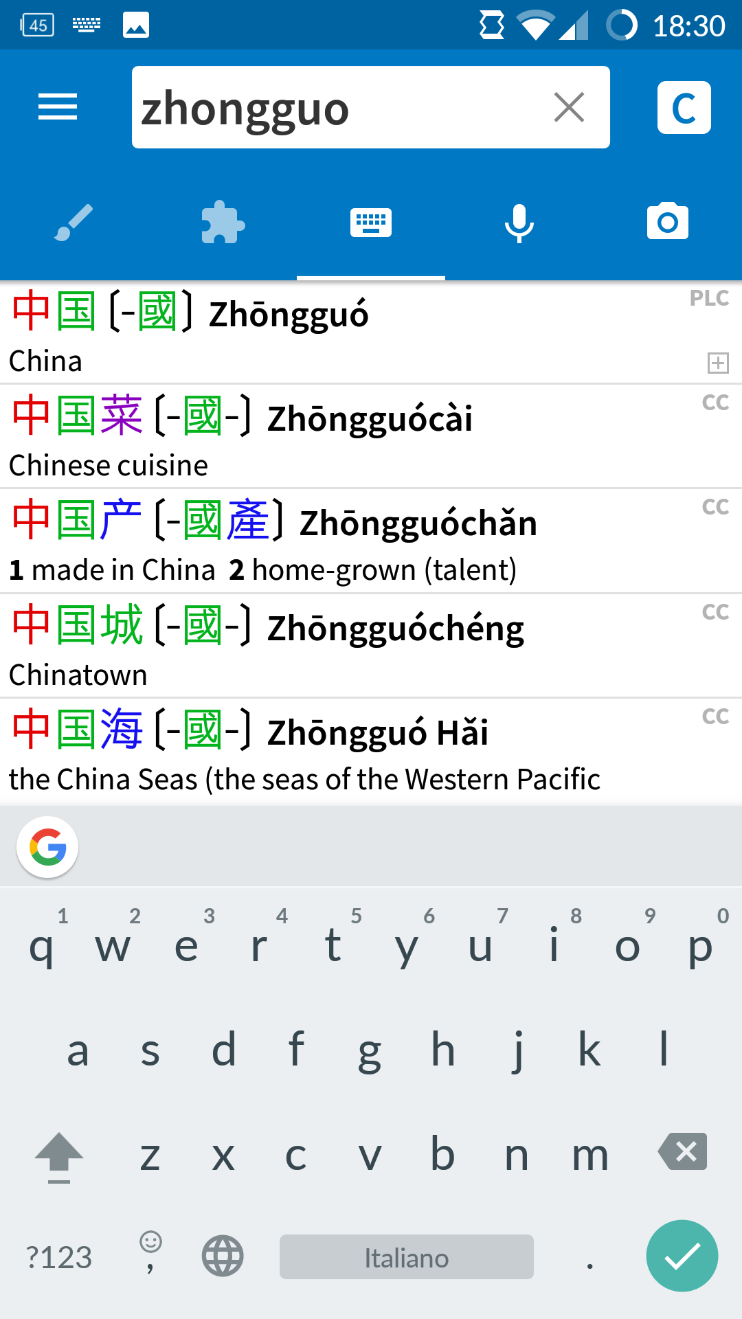 - una tastiera: questo è il simbolo che userete di più. Eccoci finalmente nella sezione del dizionario vera e propria. Avete trovato il vostro carattere e vi appare in una o più scelte sul dizionario (potete pure scorrere in basso col dito per vedere le altre opzioni, se ci sono).